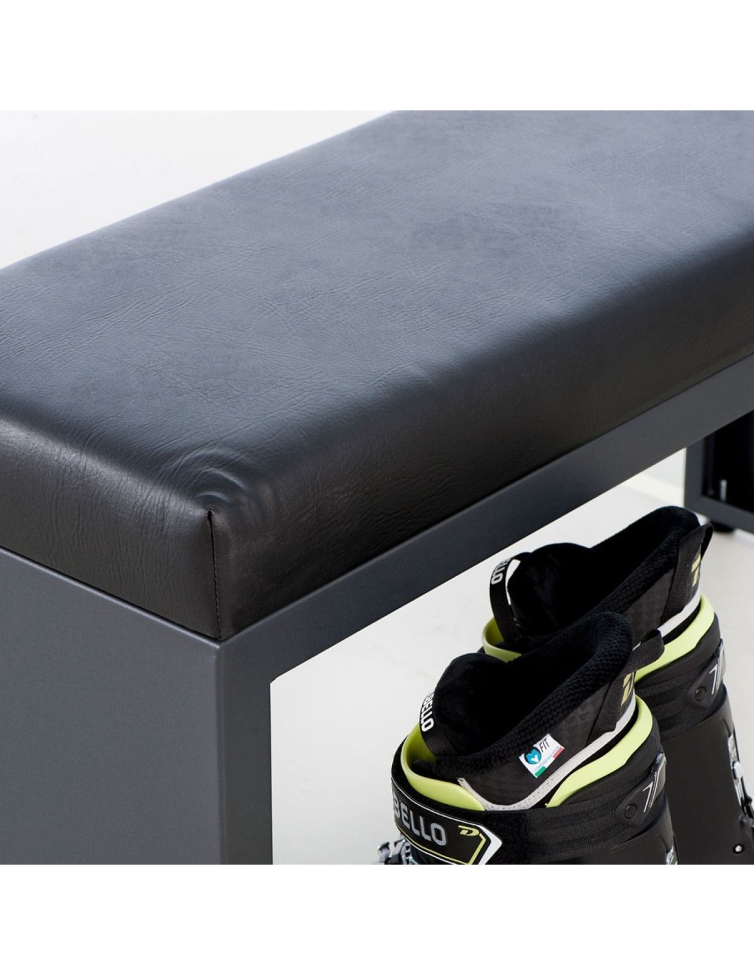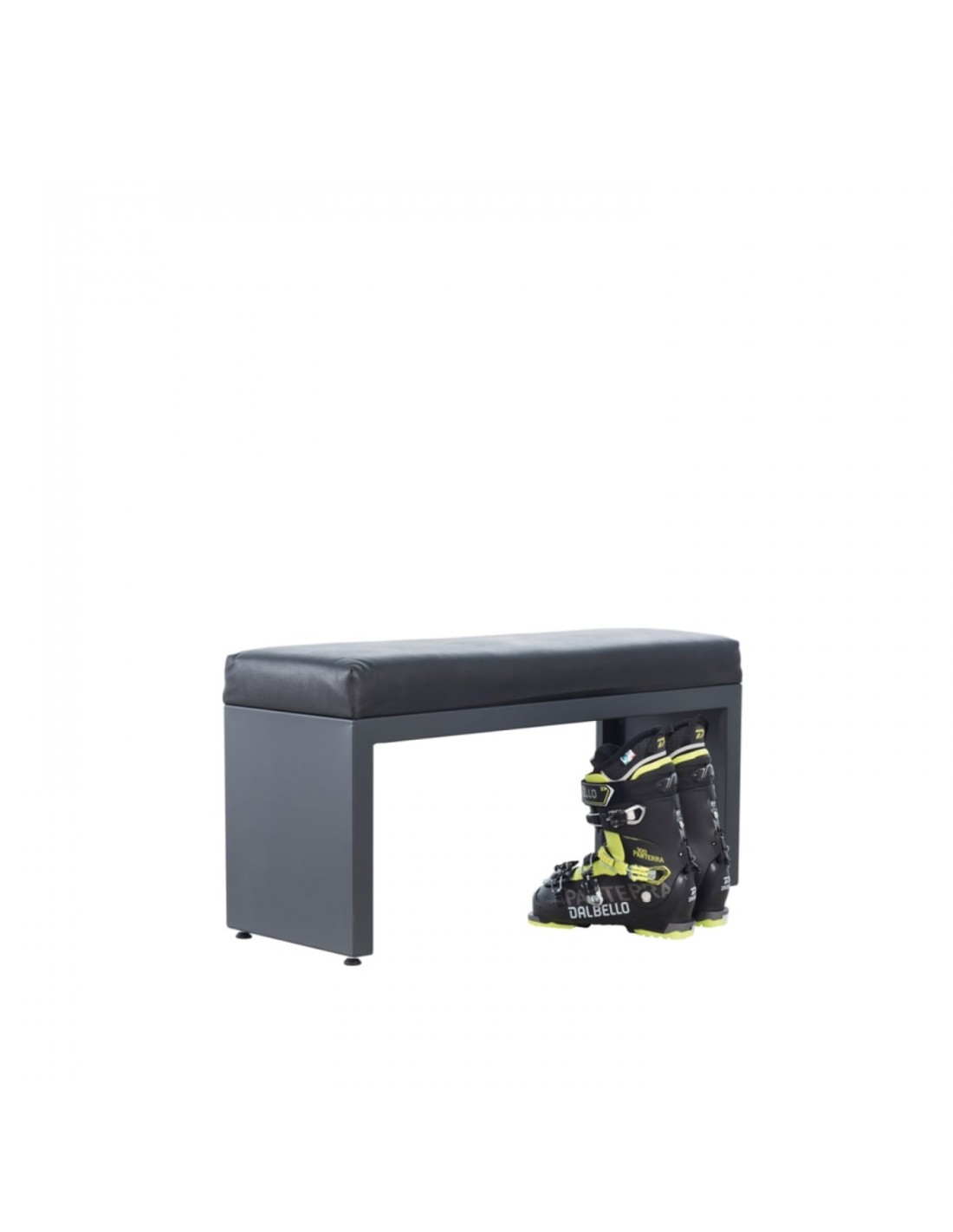 Construcția băncii este alcătuită dintr-o unitate de bază solidă și un scaun acoperit cu piele sintetică neagră. Unitatea de bază este realizată din oțel cu grosimea de 1,5 mm. Picioarele cu înălțime reglabilă, pe care stă banca, permit nivelarea corectă a acesteia la podea. Scaunul este moale si confortabil, iar invelisul din piele este caracterizat de rezistenta ridicata la deteriorare si uzura. Banca face parte din echipamentul de bază al oricărei închirieri sau depozit de schiuri, precum și al serviciului de schi și al magazinelor de sport.