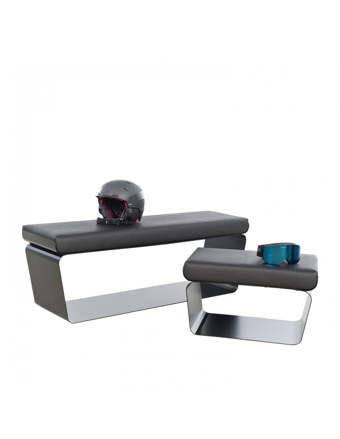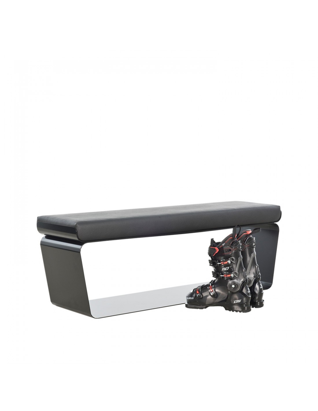 Unitatea de bază este realizată din oțel cu grosimea de 3 mm. Scaunul este foarte moale si confortabil, iar invelisul din piele este caracterizat de rezistenta ridicata la deteriorare si uzura. Modelul inferior este facut pentru ca copiii sa se aseze si sa se potriveasca confortabil cizmele. Noile bănci fac parte din Sequence Line - echipamente avansate și elegante pentru închirieri de schiuri, depozite și magazine de sport.