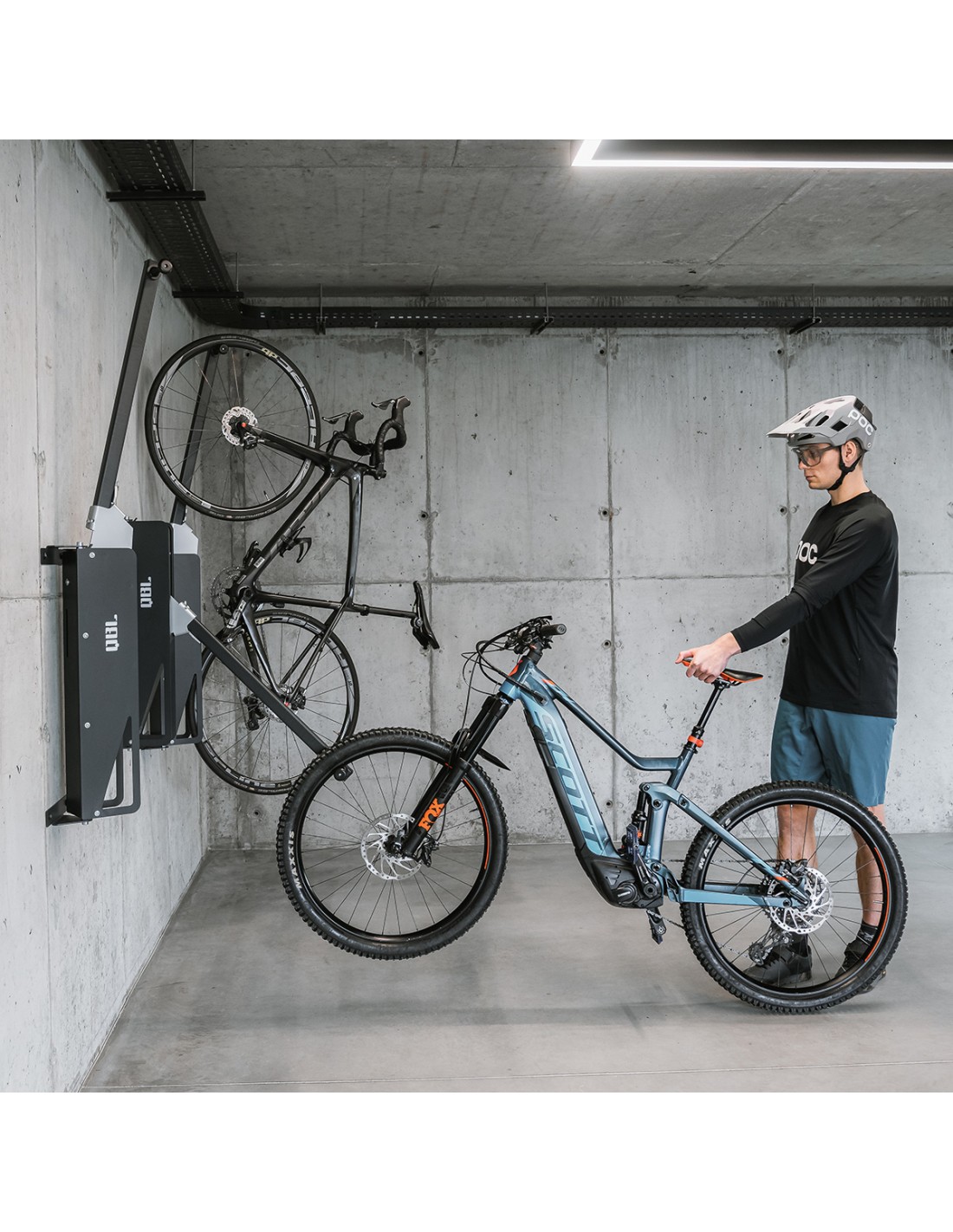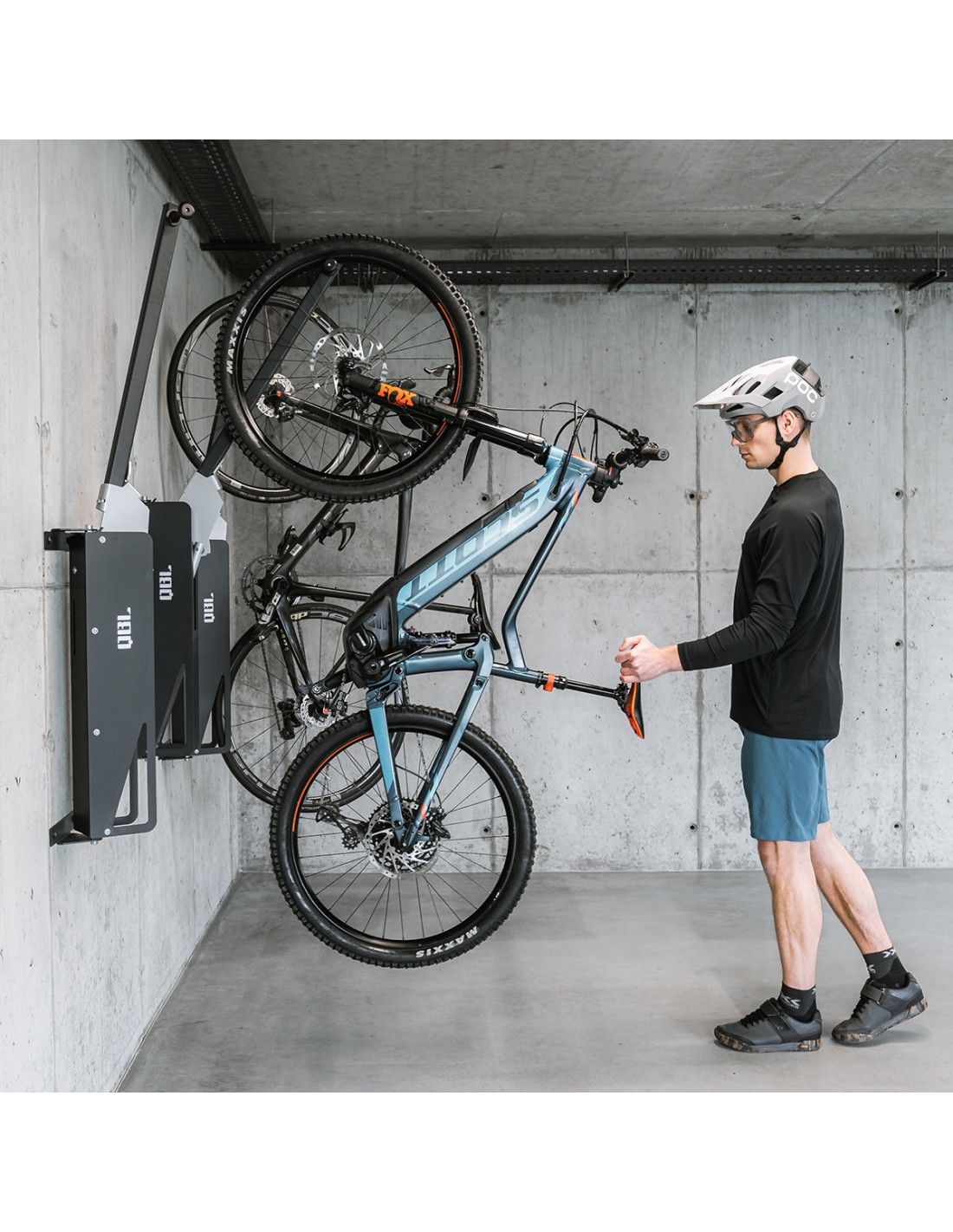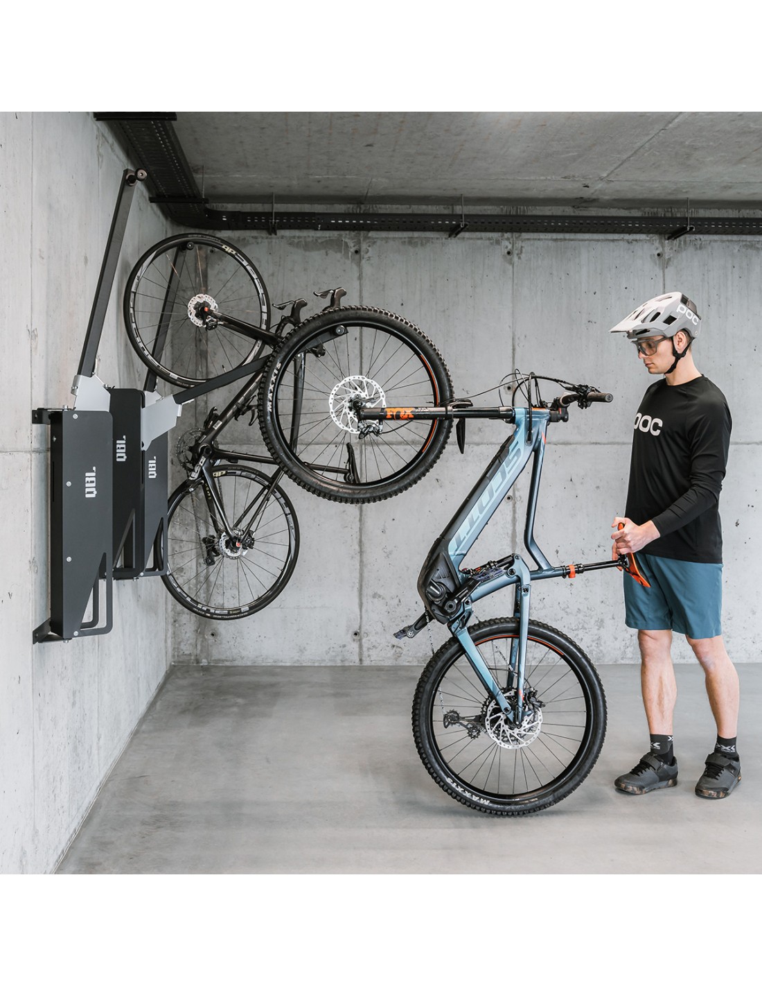 Designul Bike-Lift oferă depozitare eficientă pentru toate tipurile și dimensiunile de biciclete – de drum, oraș și toate categoriile de MTB – cu o greutate de până la 16 kg.